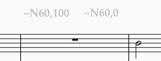 To turn the note off (otherwise it will ring forever), enter a similar command with velocity 0: ~N60,0.
